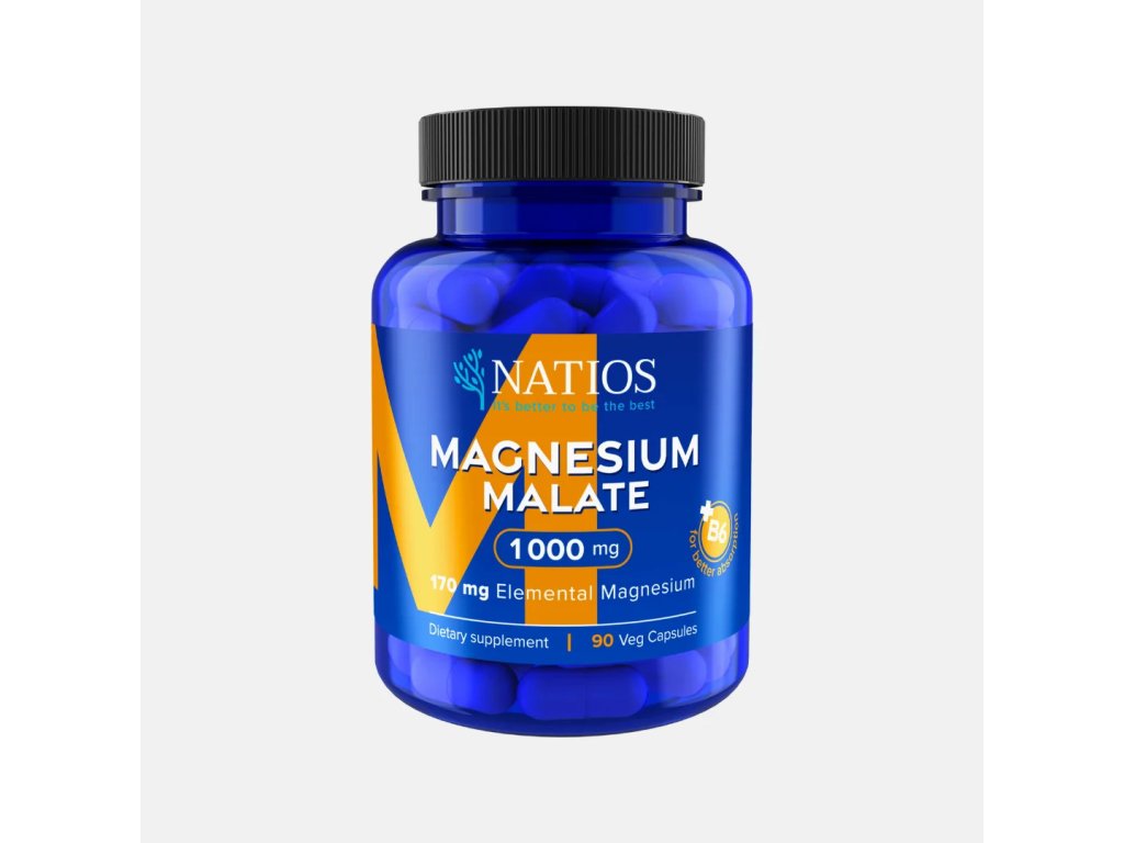 NATIOSNATIOS Magnesium Malate 1000 mg + B6, 90 veg. kapslí, (elem. hořčík 170 mg)
