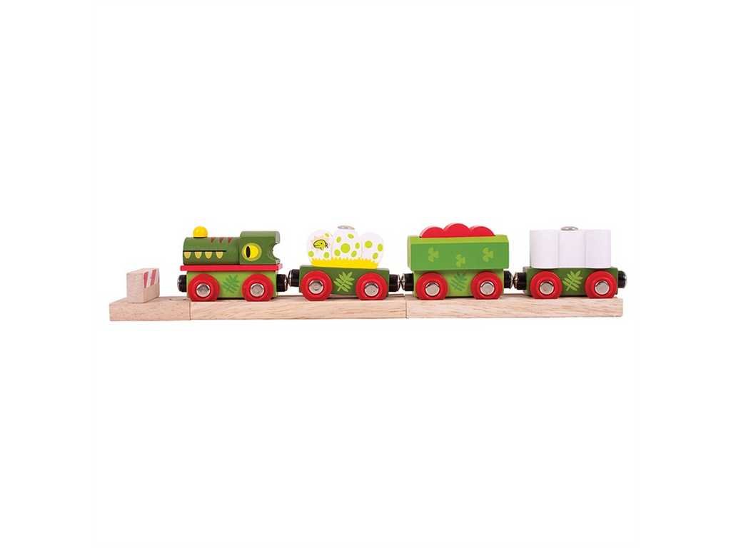 Součásti balení jsou také koleje: 2ks střední kolej BJT101 a 1ks koncová kolej BJT161!Děti budou milovat tento jasný a veselý set dinosauřího vlaku, který zahrnuje tři vagónky, kolejnice a chytrou lokomotivu. Magnetická spojka vagónků také znamená, že mohou být snadno propojeny s dalšími kusy. Hlavní vlastnosti: vláčkodráhy a jejich příslušenství značky Bigjigs Rail je možno kombinovat se všemi dalšími dřevěnými vláčkodráhami na trhuvyrobeno z kvalitních a zodpovědně získaných přírodních materiálůodpovídá současným evropským bezpečnostním normámpodporuje představivost, obratnost a koordinaciDoplňkové parametry
