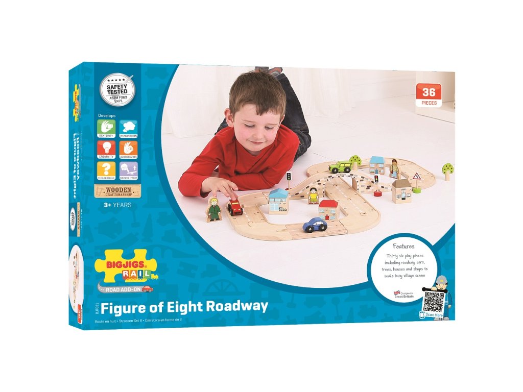 Tato fantastická sada osmička je ideální dárek pro vaše dítě. Obsahuje řadu dřevěných silníčních dílů a příslušenství, což umožňuje dostatek prostoru pro delší hru. Může být použita s jinými herními sety vláčkodráh Bigjigs Rail a tím i rozšířit různé herní aktivity. Ideální pro zvýšení zručnosti a koordinace dítěte. Hlavní vlastnosti: vláčkodráhy a jejich příslušenství značky Bigjigs Rail je možno kombinovat se všemi dalšími dřevěnými vláčkodráhami na trhuvyrobeno z kvalitních a zodpovědně získaných přírodních materiálůodpovídá současným evropským bezpečnostním normámpodporuje představivost, obratnost a koordinaciDoplňkové parametry