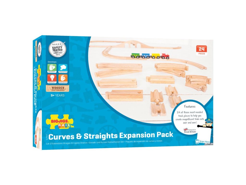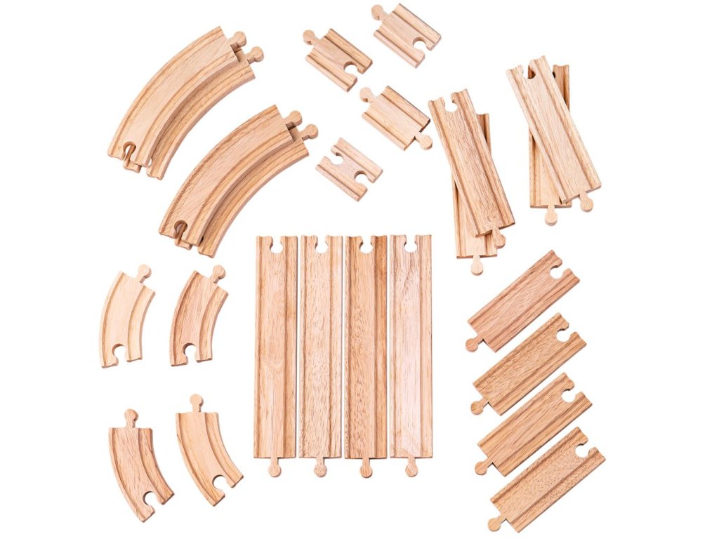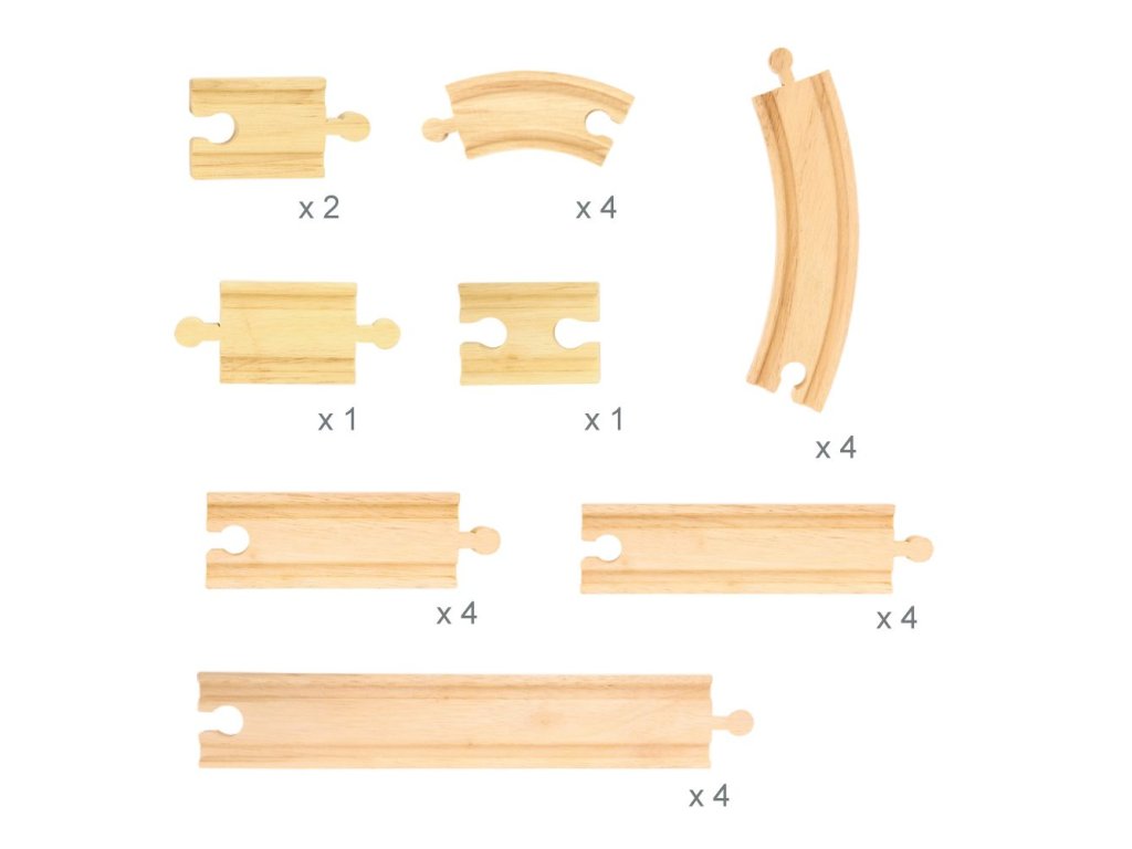 Obsahuje 24 dílů dřevěných kolejí. Hlavní vlastnosti: vláčkodráhy a jejich příslušenství značky Bigjigs Rail je možno kombinovat se všemi dalšími dřevěnými vláčkodráhami na trhuvyrobeno z kvalitních a zodpovědně získaných přírodních materiálůodpovídá současným evropským bezpečnostním normámoodporuje představivost, obratnost a koordinaciDoplňkové parametry