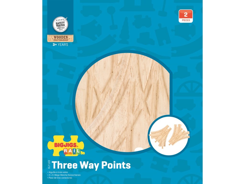 Toto balení obsahuje 2 kusy rozcestníků z našeho BigJigs železničního sortimentu, kterými je možno jet třemi směry. Vyrobeny jsou z kvalitního tvrdého dřeva a jsou kompatibilní s dalšími dřevěnými železničními systémy našich vláčkodráh a tím se stanou skvělým přírustkem do vaší sbírky železnic. Hlavní vlastnosti: vláčkodráhy a jejich příslušenství značky Bigjigs Rail je možno kombinovat se všemi dalšími dřevěnými vláčkodráhami na trhuvyrobeno z kvalitních a zodpovědně získaných přírodních materiálůodpovídá současným evropským bezpečnostním normámpodporuje představivost, obratnost a koordinaciDoplňkové parametry