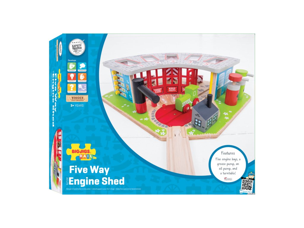 Žádná železnice by nebyla úplná bez těchto garáží pro 5 různých vlaků. S dvířky a dvěma sudy na olej lze pohybovat. Balení obsahuje funkční točnu, otevírací dvířka a dvě čerpadla.Hlavní vlastnosti: vláčkodráhy a jejich příslušenství značky Bigjigs Rail je možno kombinovat se všemi dalšími dřevěnými vláčkodráhami na trhuvyrobeno z kvalitních a zodpovědně získaných přírodních materiálůodpovídá současným evropským bezpečnostním normámpodporuje představivost, obratnost a koordinaciDoplňkové parametry