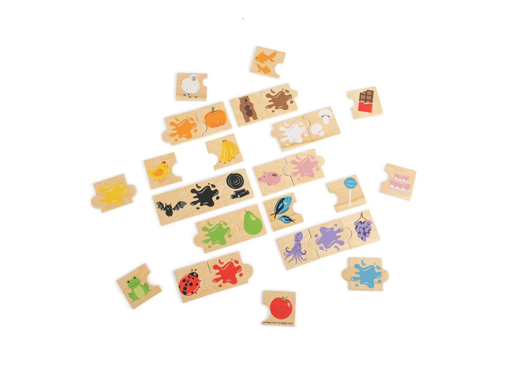 Tato zábavná vzdělávací hra na sladění barev obsahuje 30 dřevěných dílků v 10 barvách, které je třeba sladit do trojic podle barev. Například medvěda hnědého lze sladit s čokoládovou tyčinkou a hnědou kaňkou. Hra napomáhá koordinaci ruka-oko, rozvíjí logické myšlení, znalosti a slovní zásobu dětí a také schopnosti rozpoznávat barvy. Vyrobeno z vysoce kvalitních materiálů z odpovědných zdrojů. Splňuje všechny evropské bezpečnostní normy. Hlavní vlastnosti: zábavná vzdělávací hra30 dřevěných robustních dílků puzzlí10 barevrozvíjí znalosti a dovednostivhodné pro děti od 2 letDoplňkové parametry