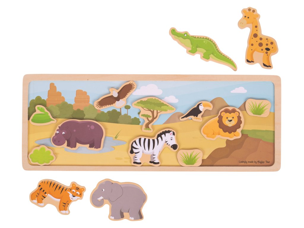 Od lva po slona, tato zábavná sada magnetické puzzle děti nejen naučí o různých zvířatech, která mohou vidět v safari, ale povzbudí je, aby zapojovaly svou fantazii a vymýšlely vlastní příběhy. S různými díly mohou děti při každém hraní vytvořit jinou scénu, což nabízí spoustu prostoru pro představivost. Obsahuje 14 masivních dřevěných magnetů, které lze použít na magnetickou základní desku puzzle a dokonce i na lednici! Skvělý způsob, jak podpořit kreativní a logické myšlení, představivost a koordinaci. Pomůže rozvíjet hrubou a jemnou motoriku. Vyrobeno z vysoce kvalitních, zodpovědně získaných materiálů. Splňuje aktuální evropské bezpečnostní normy. Obsahuje 14 dílků. Hlavní vlastnosti: obsahuje 14 dílkůvelké dílky puzzle s magnetypodporuje kreativitu, koordinaci a motorikuDoplňkové parametry
