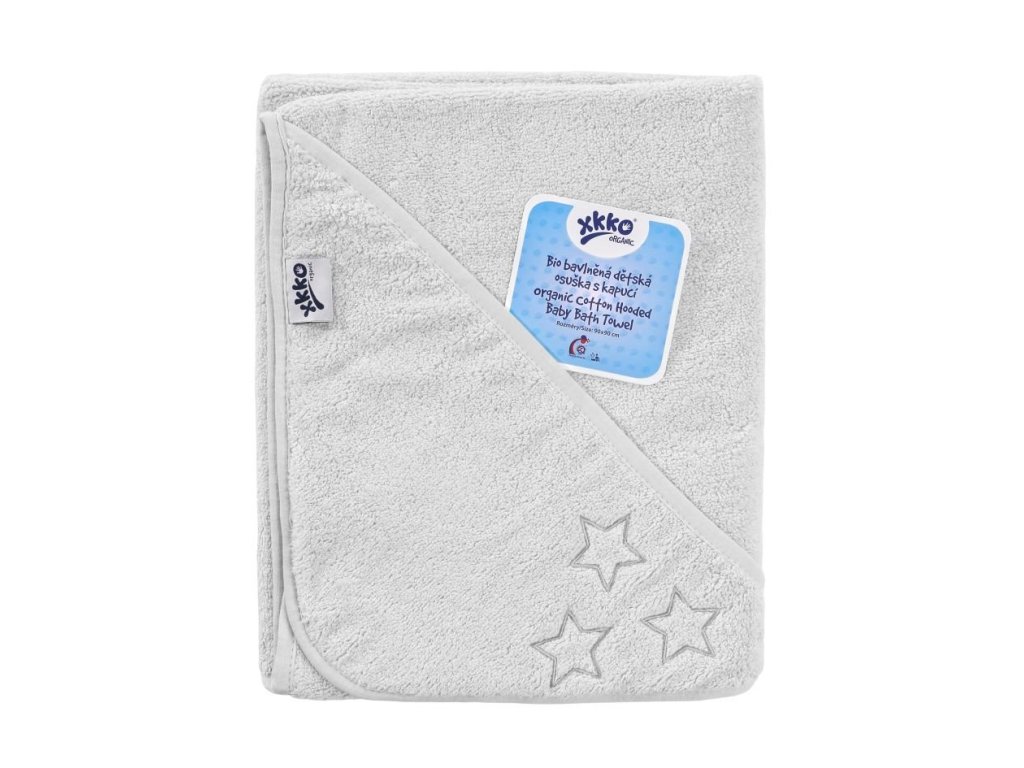 BIO bavlněná froté osuška s kapucí XKKO Organic 90x90 - White Stars