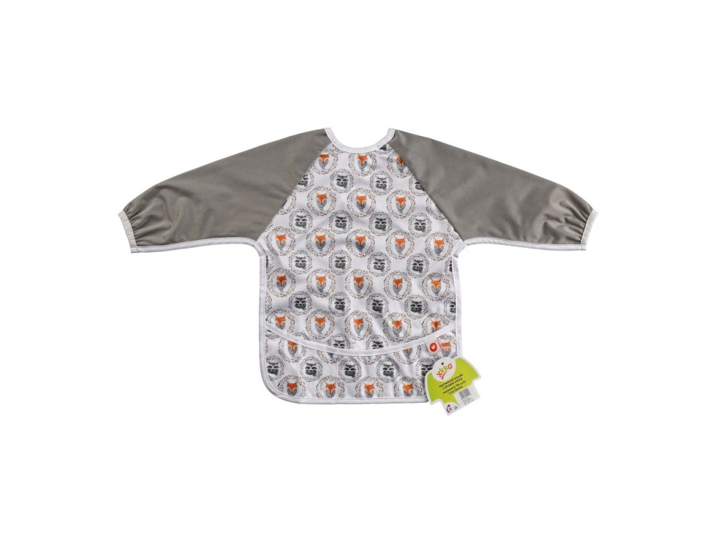 "Praktický bryndáček XKKO s rukávy a kapsou, kterých chrání outfit vašeho dítěte při krmení nebo při prvních uměleckých pokusech s barvami. Vnější kapsa zachytí drobky nebo případnou stékající tekutinu." Ve stejných barvách nabízíme i skvělé nepropustné přebalovací podložky a nepromokavé pytlíky, které určitě využijete nejen při transportu mokrých plavek.
