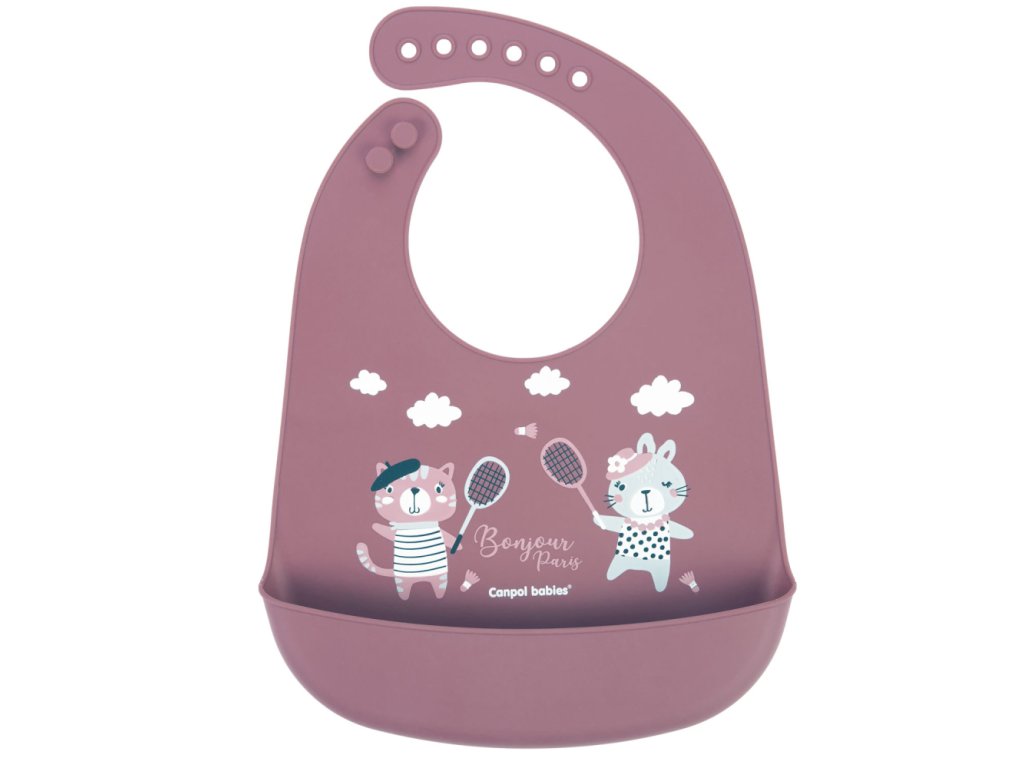 Canpol babies Bryndák silikonový s kapsou BONJOUR PARIS růžový