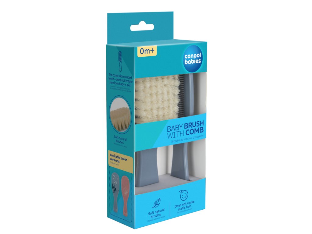 Canpol babies Hřeben a kartáč přírodní měkký GOLD modrý