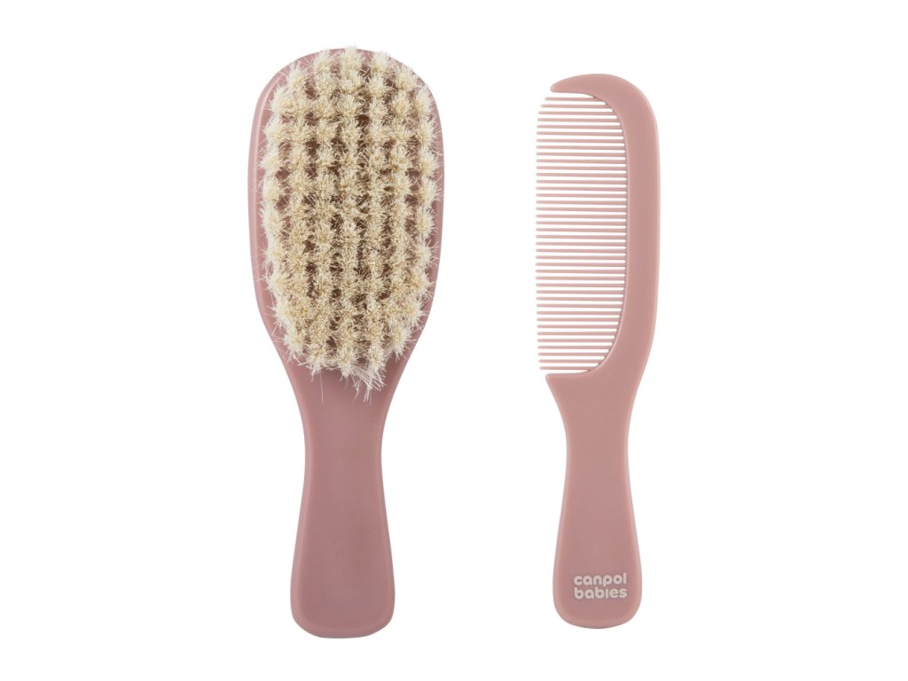 Canpol babies Hřeben a kartáč přírodní měkký GOLD růžový