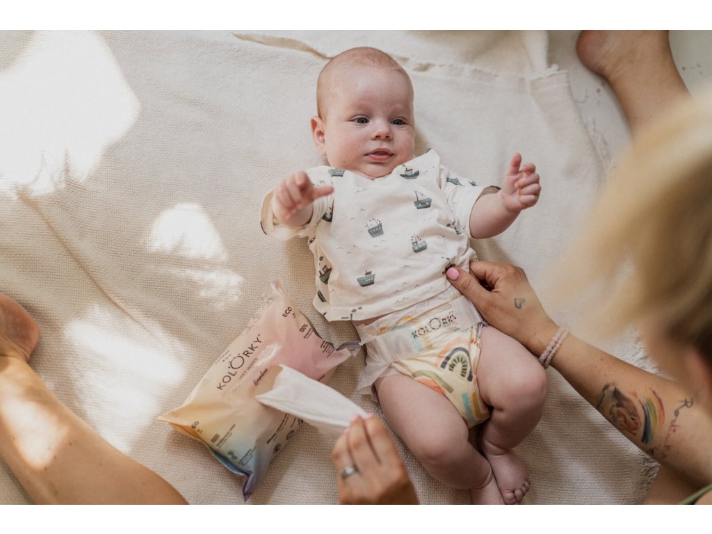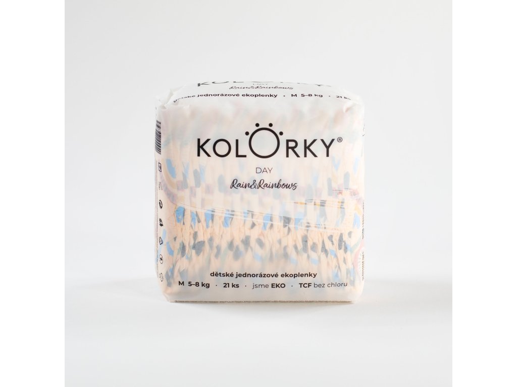 DAY Déšť & Duhy myslí na zdraví vašeho miminka, přírodu kolem sebe a design, který udělá i z přebalování hezkou chvilku. Jak to dělají? Jsou z přírodních a obnovitelných materiálů, šetrné k jemné pokožce miminek a svými barevnými motivy podtrhnou styl vašich dětí. Plenky jsou eko, protože jsou vyrobeny z přírodních a obnovitelných materiálů, neobsahují chlor, ftaláty, latex ani parfémy, takže nedráždí citlivou dětskou pokožku a nevyvolávají alergie. Naopak před vznikem opruzenin chrání dětskou pokožku proužky z přírodní Aloe vera. Plenky jsou navrženy tak, aby se miminku co nejlépe přizpůsobily, nikde netlačily, byly prodyšné a vše zůstalo na svém místě. Savé jádro, které je tvořeno vrstvou buničiny a SAP gelu, pevně uzamyká tekutiny i zápach. KOLORKY tak odvedou vlhkost rychle pryč a zanechají dětskou pokožku suchou a klidnou. Všechny naše plenky jsou dermatologicky testovány a certifikovány Státním zdravotnickým ústavem - SZÚ. Na obalu výrobku je chybně uvedeno označení shody CE, které na tomto druhu výrobku dle platné legislativy být nemá. Označení nemá vliv na funkčnost a zdravotní nezávadnost výrobku, která je testována Státním zdravotním ústavem.Doplňkové parametry