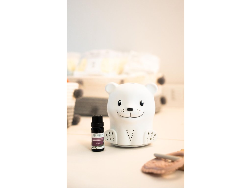Útulnou atmosféru v dětském pokoji vykouzlí aroma difuzér v hravém designu medvídka. Díky ultrazvukové technologii šetrně rozptyluje vonnou mlhu po místnosti, a představuje tak perfektního pomocníka pro zvlhčení vzduchu, pročištění a bezpečné provonění prostoru éterickými oleji. Jejich účinky tak děti mohou přirozeně vdechovat a společně je oceníte i v období potíží, například při nachlazení, pro zklidnění před spaním nebo pro podporu koncentrace při učení. Tichý chod difuzéru neruší a barevné LED podsvícení funguje jako lampička s možností prolínání 7 druhů barev. Dětem rozzáří oči přiložený dárek (dětský náramek).