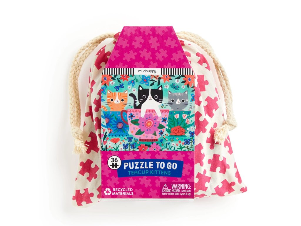 Mudpuppy Puzzle Koťata v hrnku na čaj v látkovém pytlíku 36 dílků