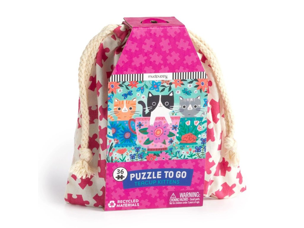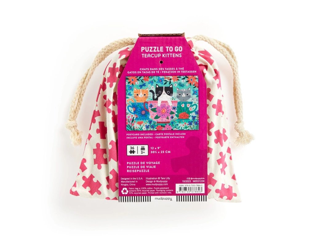Mudpuppy Puzzle Koťata v hrnku na čaj v látkovém pytlíku 36 dílků