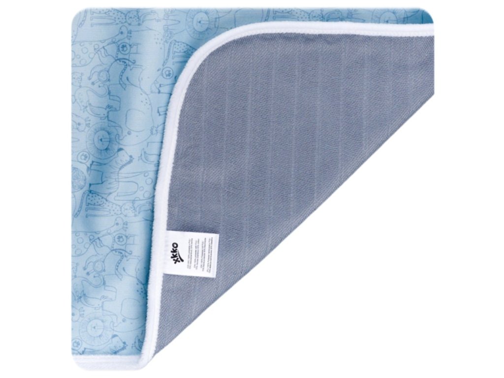 Přebalovací podložky XKKO jsou oboustranné. Z vnější strany je nepropustná polyesterová vrstva s polyuretanovým zátěrem. Jako vnitřní vrstvu, tu se kterou přijde Vaše miminko do styku, jsme zvolili naši skvělou bambusovou mušelínovou osušku.