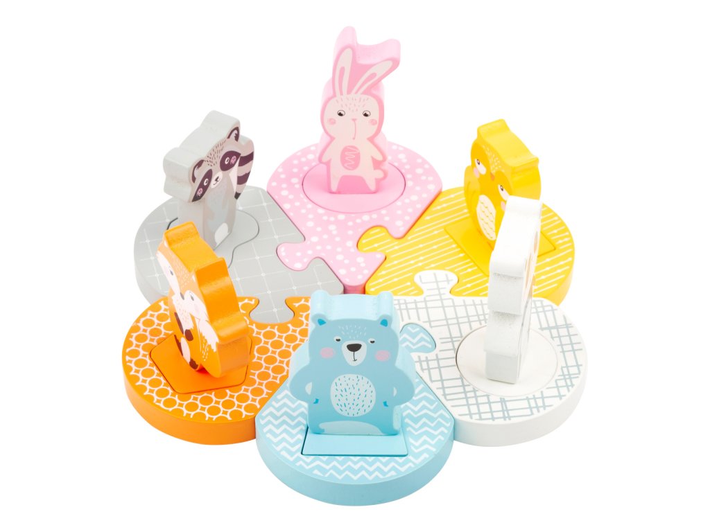 Každé zvíře má své místo! Při této hře v jednoduchých pastelových barvách je zapotřebí zručnost a jemná motorika. Nejenže je třeba správně roztřídit a vložit geometrické tvary, ale také najít správné dílky skládačky, protože pro každé zvíře je zde okvětní lístek v odpovídajících barvách!Který fanoušek puzzle dokáže správně roztřídit všechna zvířátka a dílky? Hlavní vlastnosti: obsahuje 12 dílůmoderní pastelové provedeníprocvičuje jemnou motorikuDoplňkové parametry