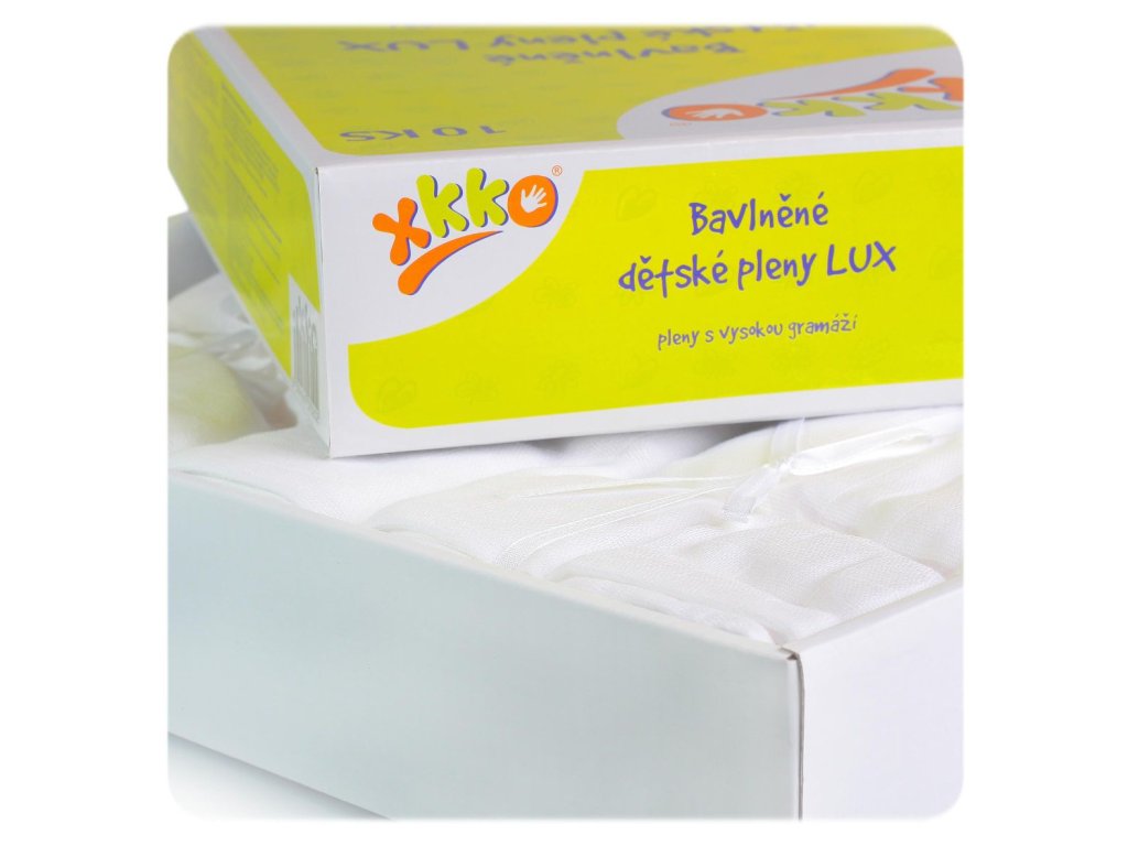 „Látková plena odjakživa patří k prvním měsícům života a nachází široké uplatnění i v dnešní moderní době. Pro maminky, které rády balí své dítě do bavlny jsou připraveny vysokogramážní savé pleny z exkluzivní řady XKKO LUX a LUX ECO. Pro běžné denní využití – pod hlavičku, na utírání nabízíme standartní řadu XKKO Classic.“ XKKO LUX jsou zlatou střední cestou v bavlněných čtvercových plenách. Vybrat si ale můžete i o něco levnější XKKO Classic nebo špičkové biobavlněné XKKO Organic Staré časy.Jako alternativu pro přebalování máme bavlněné skládané pleny nebo biobavlněné kalhotkové pleny. Ke všem variantám budete potřebovat svrchní plenkové kalhotky a biodegradabilní separační pleny.Doplňkové parametry