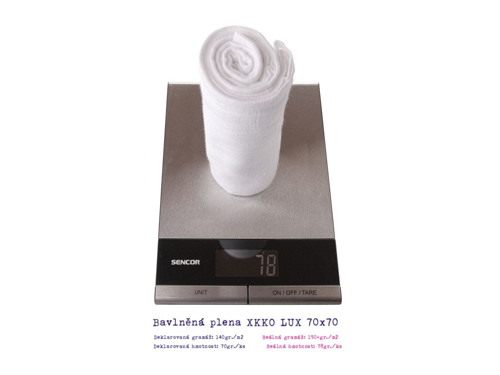 „Látková plena odjakživa patří k prvním měsícům života a nachází široké uplatnění i v dnešní moderní době. Pro maminky, které rády balí své dítě do bavlny jsou připraveny vysokogramážní savé pleny z exkluzivní řady XKKO LUX a LUX ECO. Pro běžné denní využití – pod hlavičku, na utírání nabízíme standartní řadu XKKO Classic.“ XKKO LUX jsou zlatou střední cestou v bavlněných čtvercových plenách. Vybrat si ale můžete i o něco levnější XKKO Classic nebo špičkové biobavlněné XKKO Organic Staré časy.Jako alternativu pro přebalování máme bavlněné skládané pleny nebo biobavlněné kalhotkové pleny. Ke všem variantám budete potřebovat svrchní plenkové kalhotky a biodegradabilní separační pleny.Doplňkové parametry